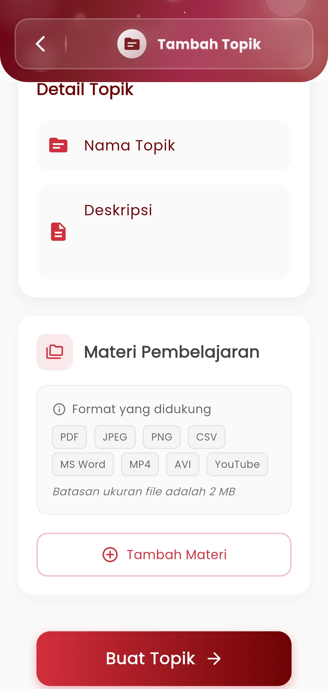 Each topic can be equipped with learning files such as:- PDF, Word, CSV