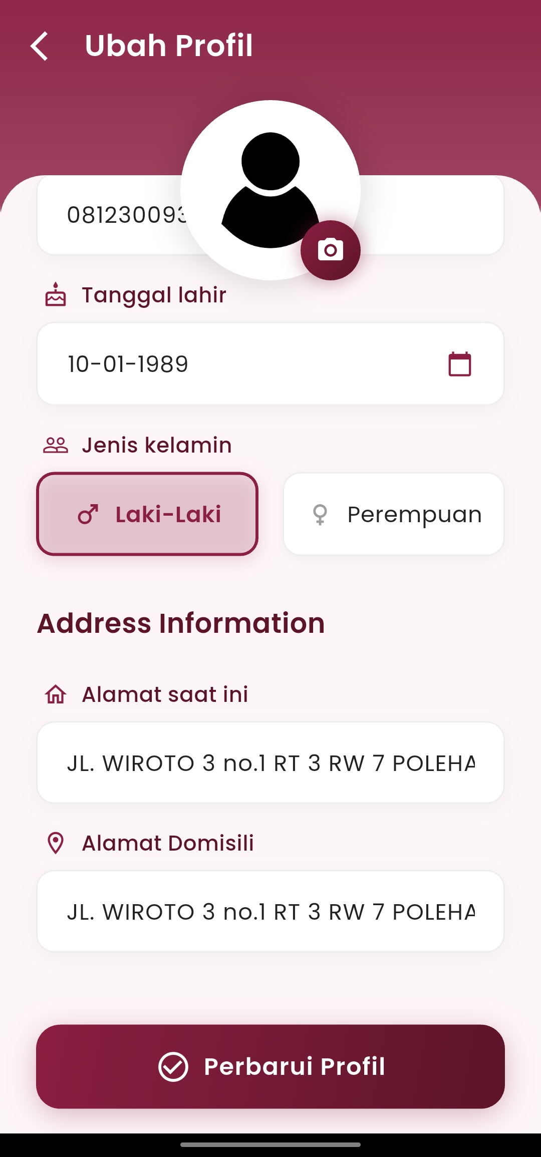 The Edit Profile menu is designed so that users can manage their personal information thoroughly, quickly, and securely. With a clean interface and intuitive navigation, users can update their data in just a few steps.