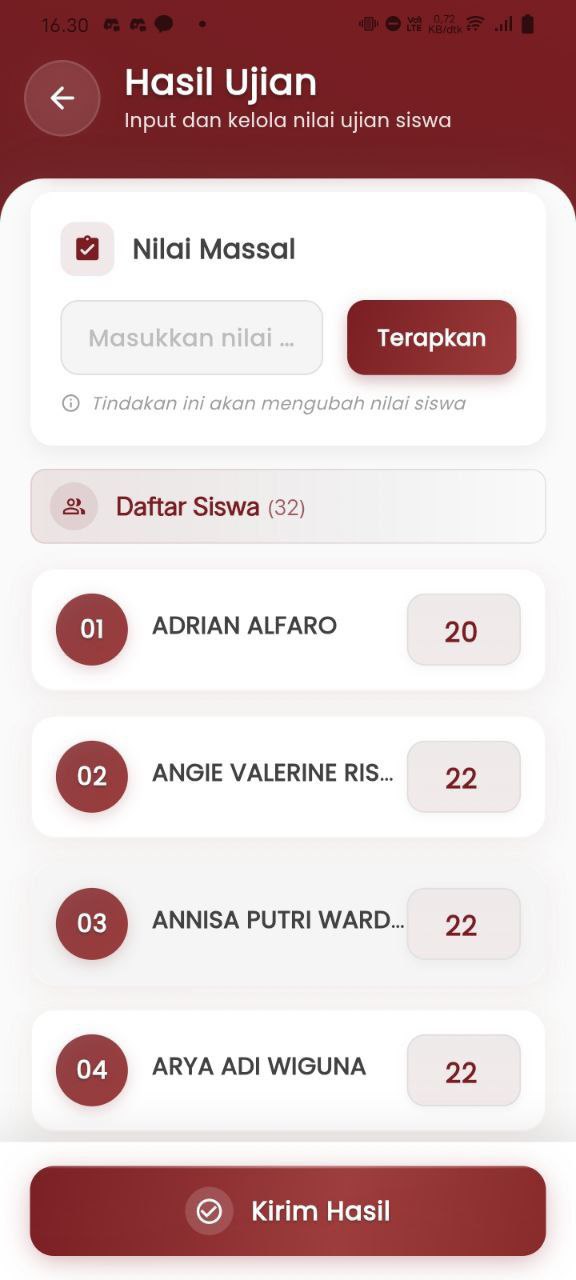 The Offline Exam Results menu facilitates teachers in conducting efficient evaluations for every student who takes a face-to-face exam. With a clean and systematic interface, the process of entering, changing, and submitting scores is done in one seamless screen.