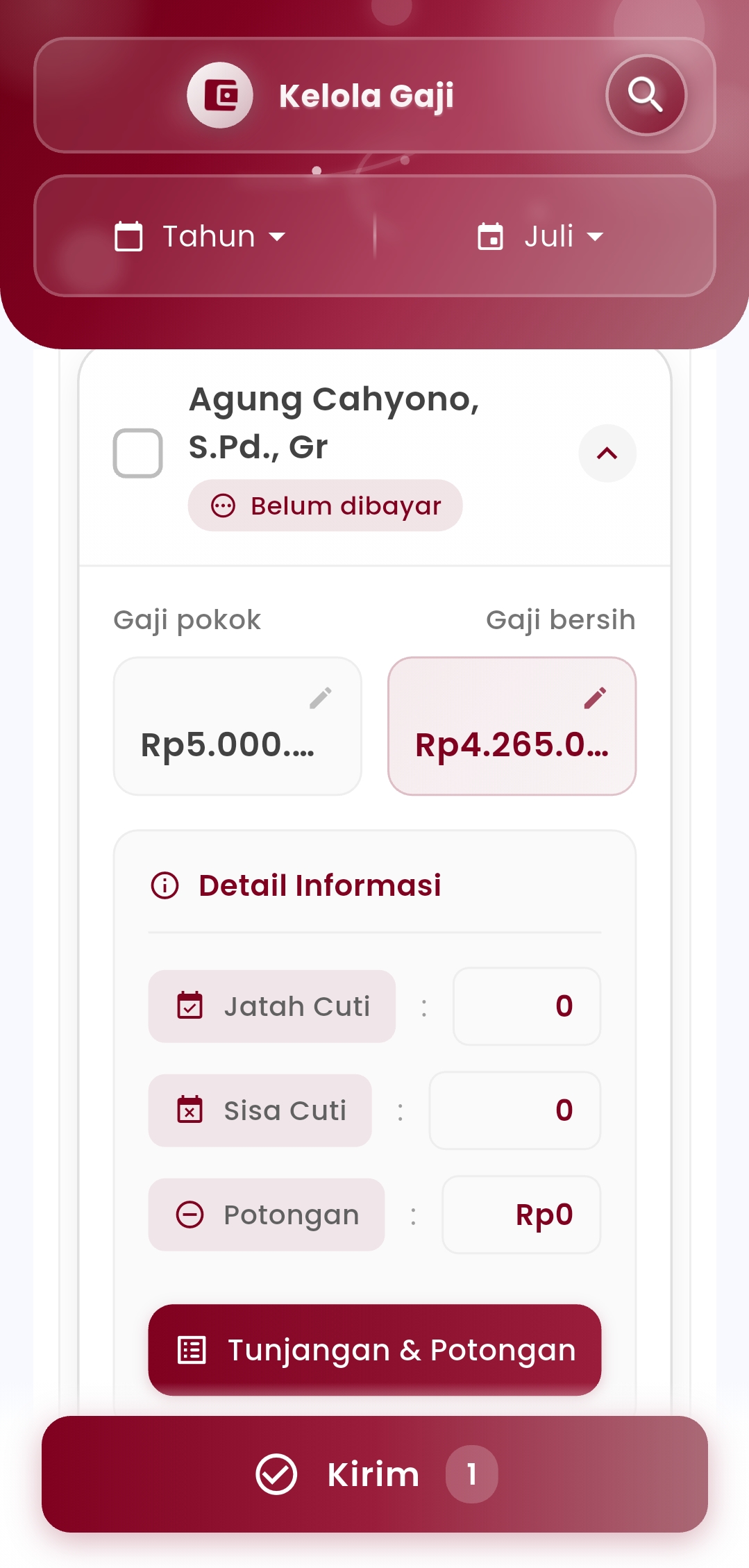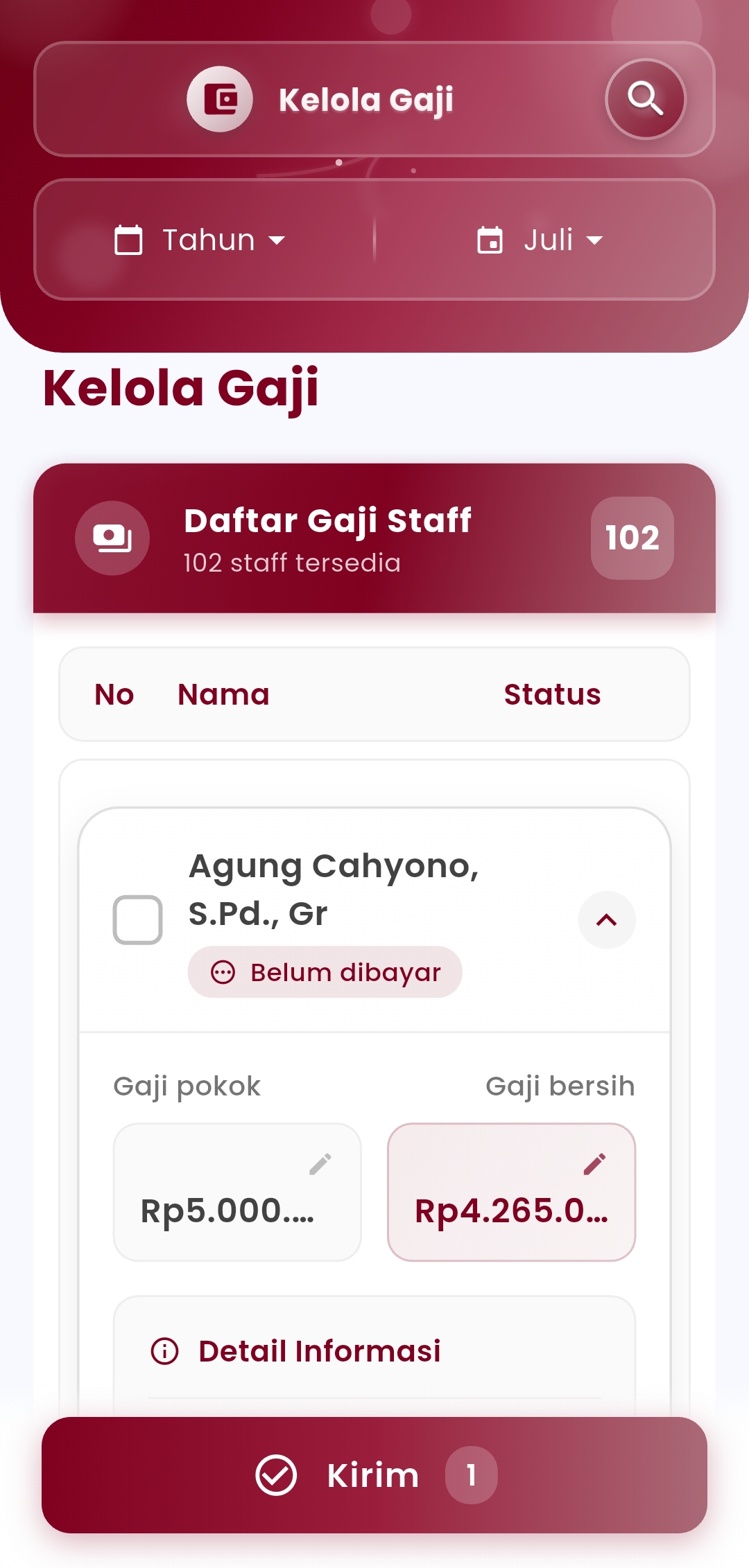 In addition, admins can also perform salary adjustments directly from the interface, ranging from editing amounts, adding or subtracting allowance-deduction components, to completing the salary disbursement process in bulk or individually. All is done in just a few simple steps, while maintaining accuracy and transparency.